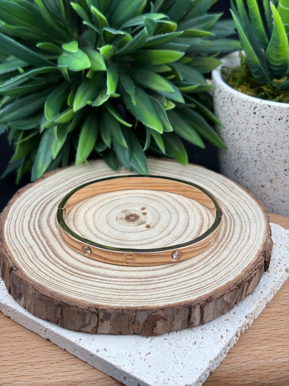 Stainless Steel Rose Gold Bangle with Diamanté #2