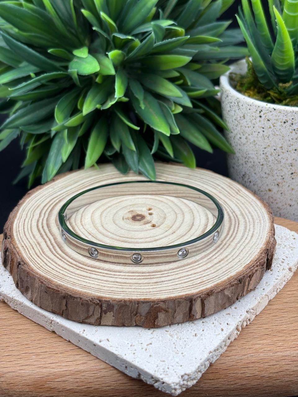 Stainless Steel Silver Bangle with Diamanté